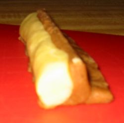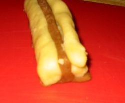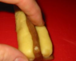 Applied to the side and smooshed into place. It's officially a cookie log! :O