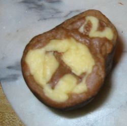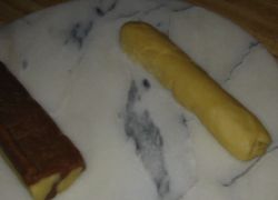 It is at this time that I realize that the plastic cutting board that I'm using is causing the dough to stick, so I opt for a marble cutting board that I've stuck in the freezer for a few minutes.. It makes a huge difference in sticking